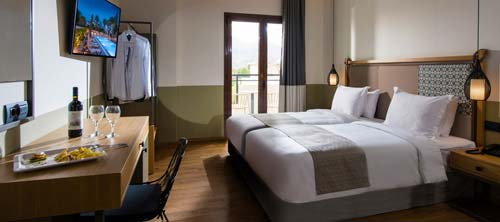 This is a two-person spacious room of 24 square meters, featuring a private balcony or terrace. Modern furnishings and earthly tones are combined to create a relaxing setting for you and your loved ones in our Double Room.